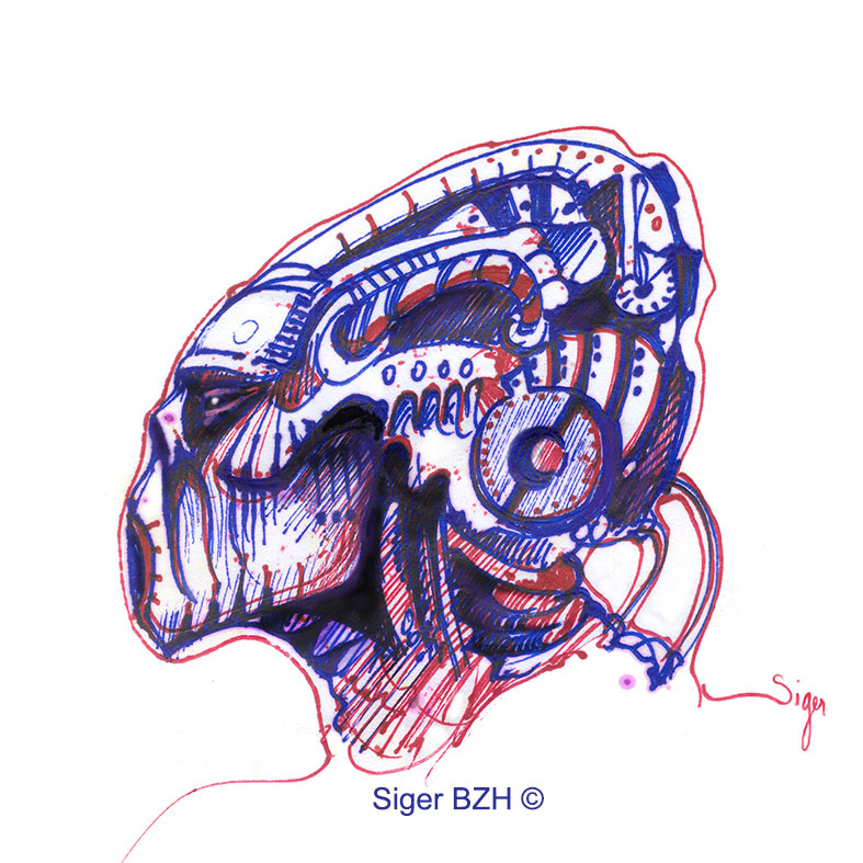 • Bonjour et merci pour ton commentaire. C’est sympathique de savoir qu’on me suit… Très jeune, je ne dessinais pas très bien et qui plus est plutôt des monstres… alors j’entends encore aujourd’hui les copains, les profs qui me disaient : « pourquoi dessines-tu ces « bestioles »… en plus ce n’est pas terrible ». Sans doute avaient-ils raison, mais c’est ce genre de dessins qui me faisaient vibrer. Et je suis content d’avoir tenu ce cap et gardé cet esprit de dessiner ce qui me fait du bien… Alors cher Jeremy, si je peux donner un conseil : les critiques sont constructives, écoute les, amuse-toi d’elles et apprends. Mais surtout, garde à l’esprit que c’est toi le seul pilote de ta machine. Celle des émotions. Le seul commandant de ta main. Demande-toi ce qui te fait plaisir. Je sais que si tu regardes des tutos, c’est que déjà, tu aimes le dessin… apprend quelques bases, dessine régulièrement et surtout amuse-toi ! Au plaisir – Siger 😉