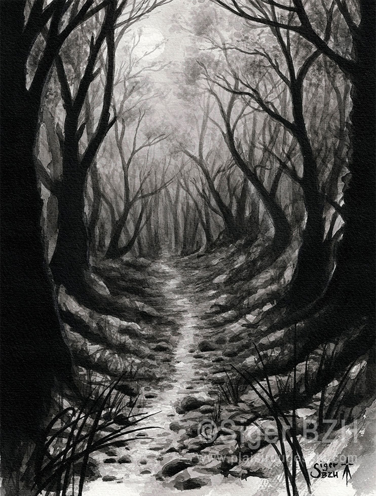 Sous-bois au claire de lune - Encre de Chine - Siger BZHSous-bois au claire de lune - Encre de Chine - Siger BZH