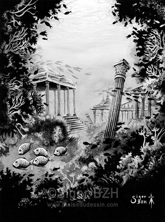 Citée engloutie - Encre de Chine - Siger BZHCitée engloutie - Encre de Chine - Siger BZH