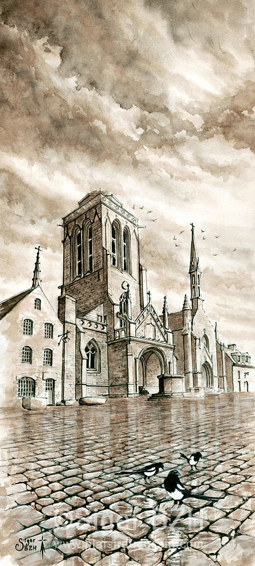 Place des commères - Sépia - Peinture de Siger BZHPlace des commères - Sépia - Peinture de Siger BZH